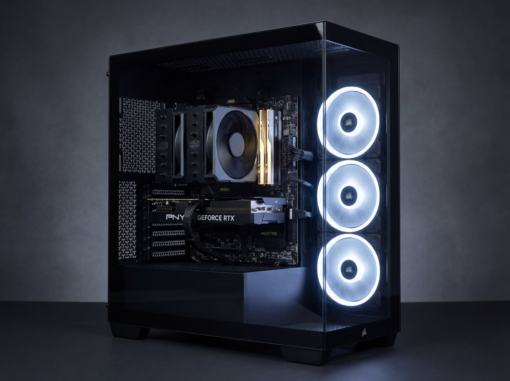- Corsair 3500X ARGB dual-chamber showcase — tempered glass panels, 3 pre-installed ARGB fans, clean rear cable routing. A build that looks as good as it performs.