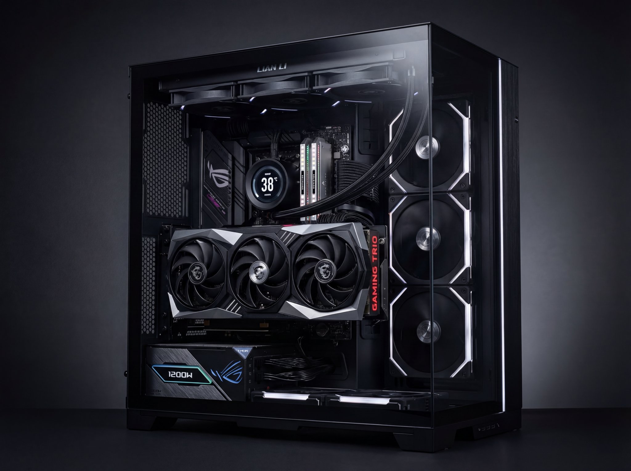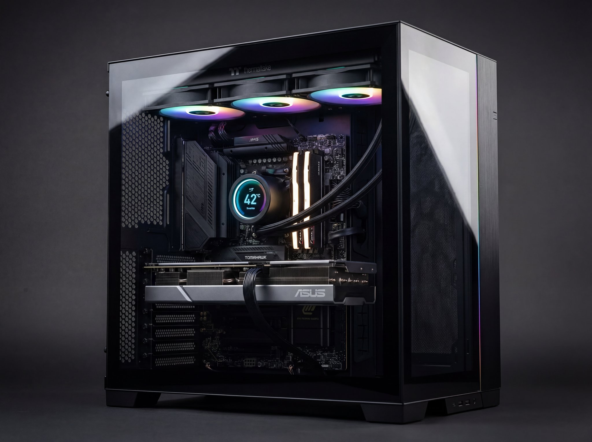 Not a configurator-output. An engineered system — every part picked for thermals, every cable routed for airflow, every fan curve tuned before it ships.