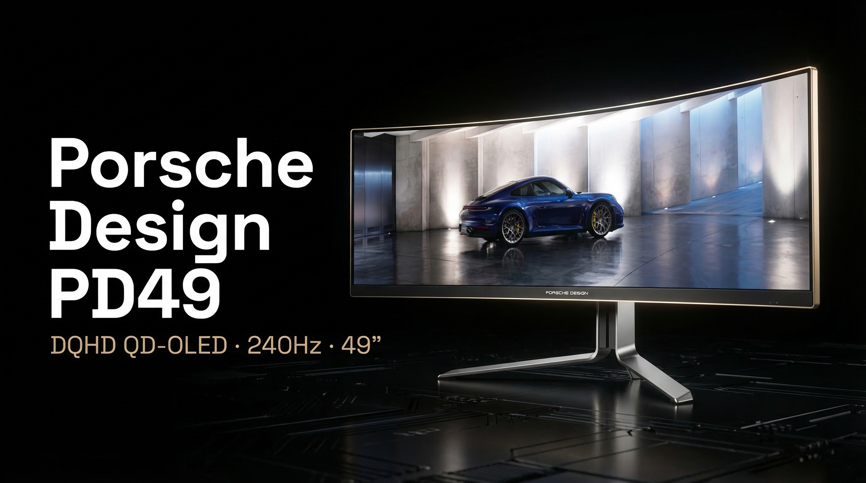 01 / 04The AOC Porsche Design AGON PRO PD49 is a luxury 49-inch QD-OLED curved gaming monitor co-designed with Porsche Design Studio. Its 5120x1440 DQHD resolution on a 32:9 aspect ratio with 240Hz and 0.03ms response time delivers the ultimate immersive ultrawide OLED gaming experience with premium Porsche Design aesthetics.