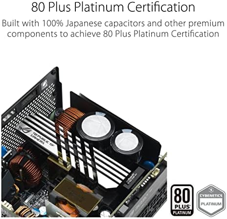 - ROG Heatsinks — Dedicated heatsink blocks over MOSFETs and other critical parts lower temperatures, reducing noise and extending the PSU's operational lifespan.