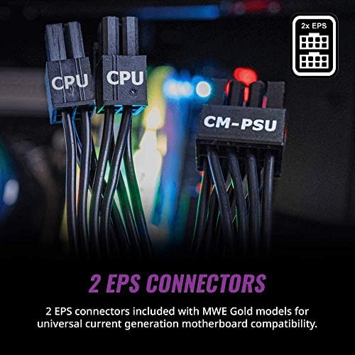 The Cooler Master MWE Gold 750 V2 750W 80 Plus Gold Fully Modular ATX PSU is an ATX 12V V2.52-compliant power supply built for modern multi-core Intel and AMD platforms. Fully modular flat cables reduce clutter and improve airflow, while the DC-to-DC circuit design delivers tight cross-load regulation on the 12V, 5V, and 3.3V rails. Dual EPS connectors ensure broad compatibility with current-generation motherboards, and a 120mm HDB fan keeps the unit quiet and thermally efficient under sustained load. Backed by a 5-year limited warranty.