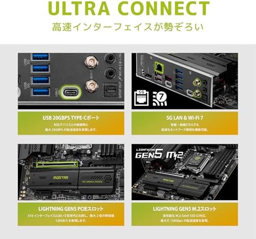 - Wi-Fi 7 & 5G LAN — Full-speed Wi-Fi 7 (BE) with Bluetooth 5.4 plus 5Gbps wired Ethernet provide low-latency connectivity in both mATX and mini-tower builds.
